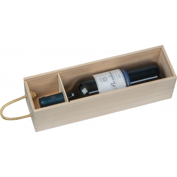 Винный ящик из светлого дерева со встроенным шнуром для переноски и раздвижной крышкой. Фиксируемый деревянный рельс надежно удерживает бутылку в ящике. Мы гравируем ваш логотип снаружи.