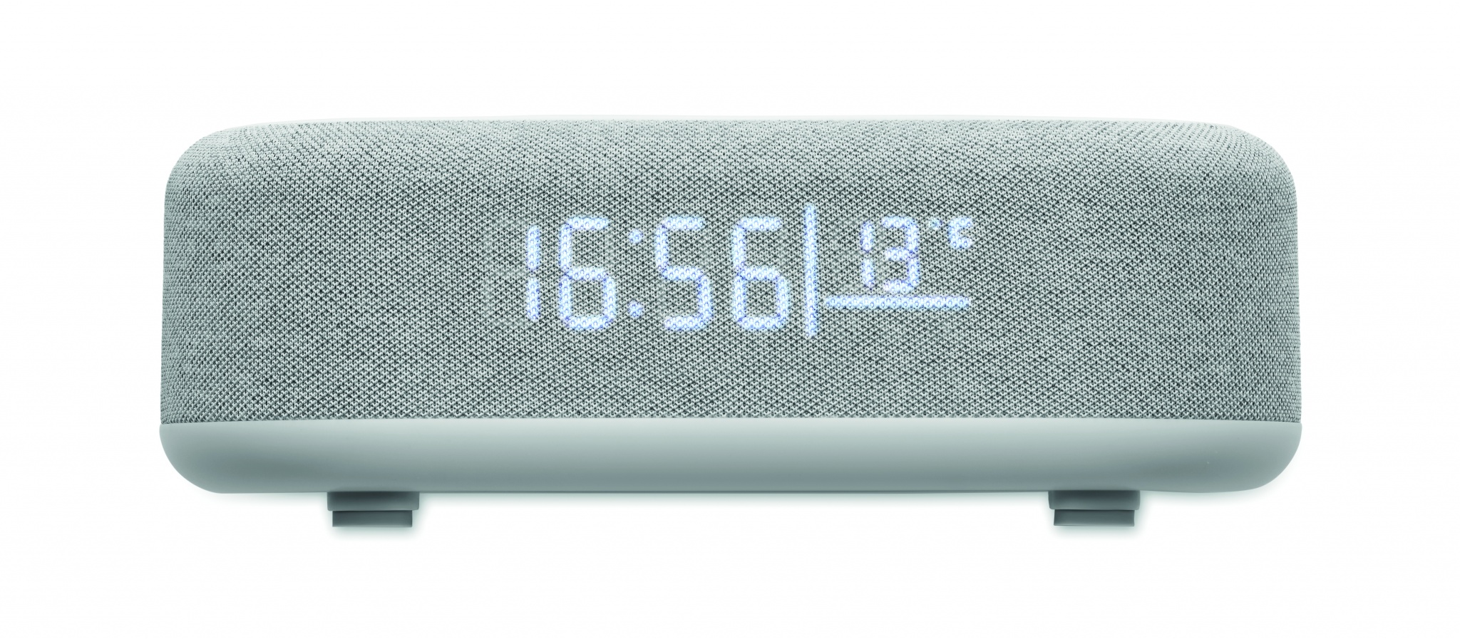 4-i-1 trådlös 15W laddning 5W högtalare i ABS med väderstation och omgivande ljus. Väckarklocka. Visning av tid och temperatur. Inbyggt Li-Iin-batteri: 1200 mAh. Speltid ca 7 timmar.