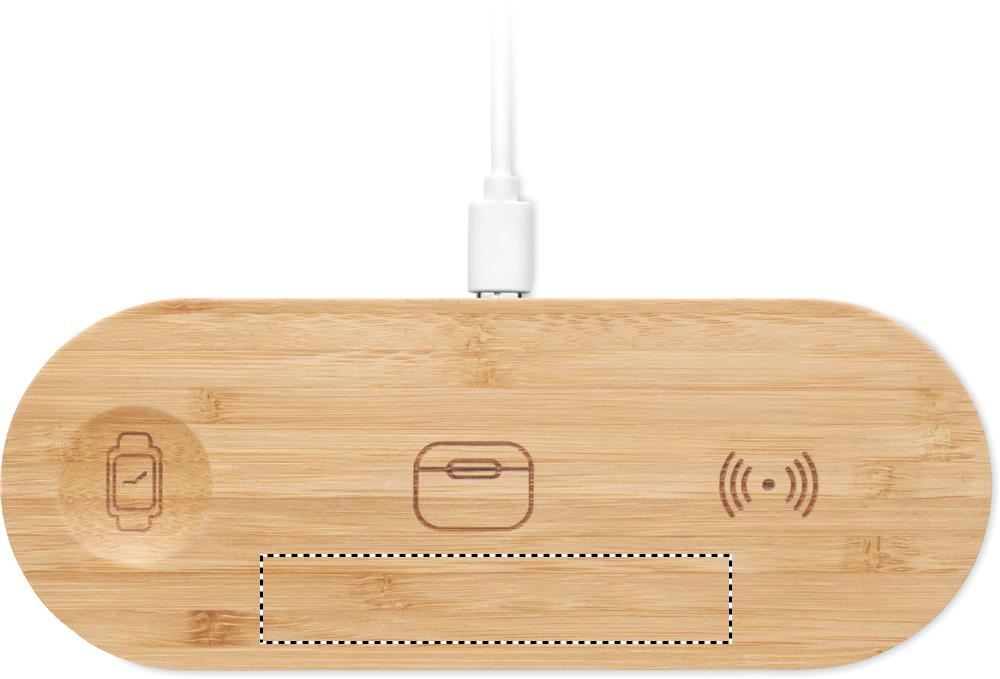 3 i 1 laddningsstation i bambufodral. Den innehåller en trådlös laddare 15W, smartwatch-laddare (endast Apple®) och TWS laddare. Bambu är ett naturmaterial och resultatet av laser kan därför skilja mellan exemplaren.