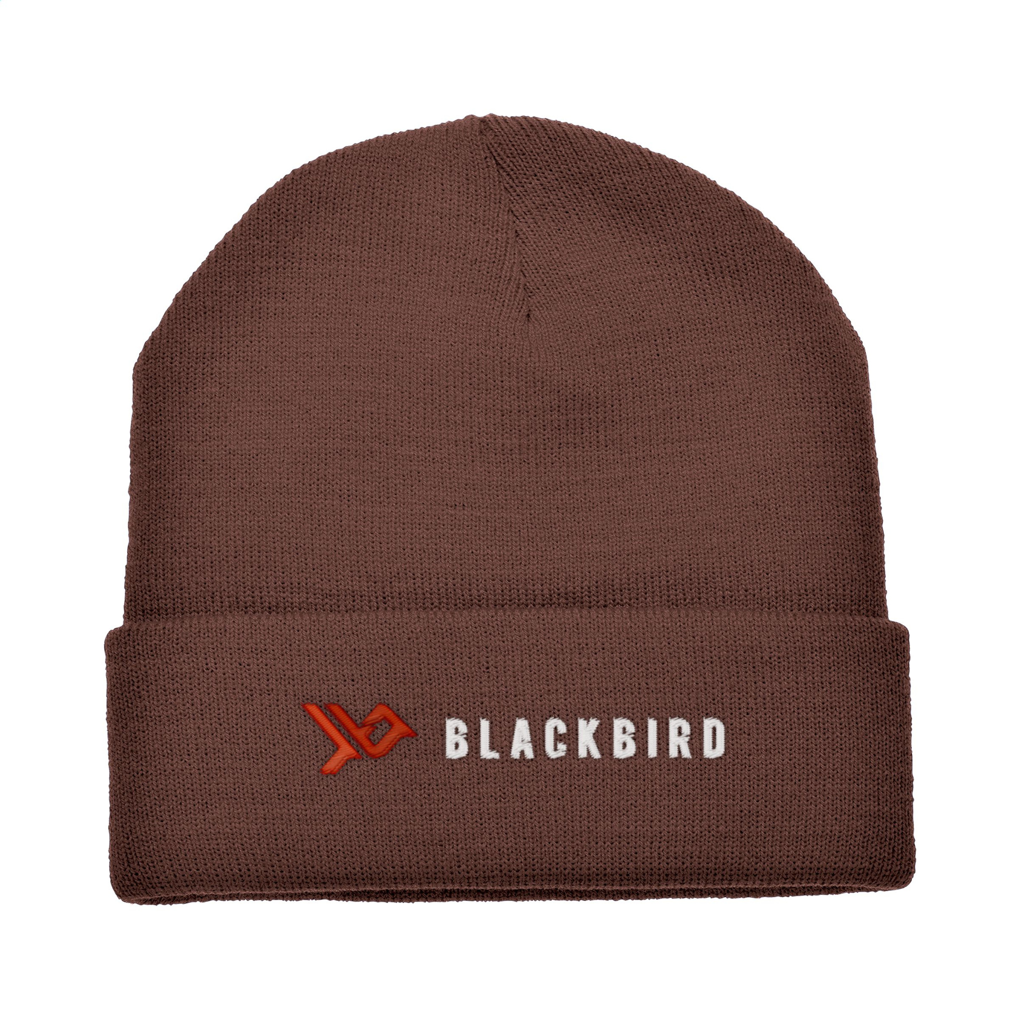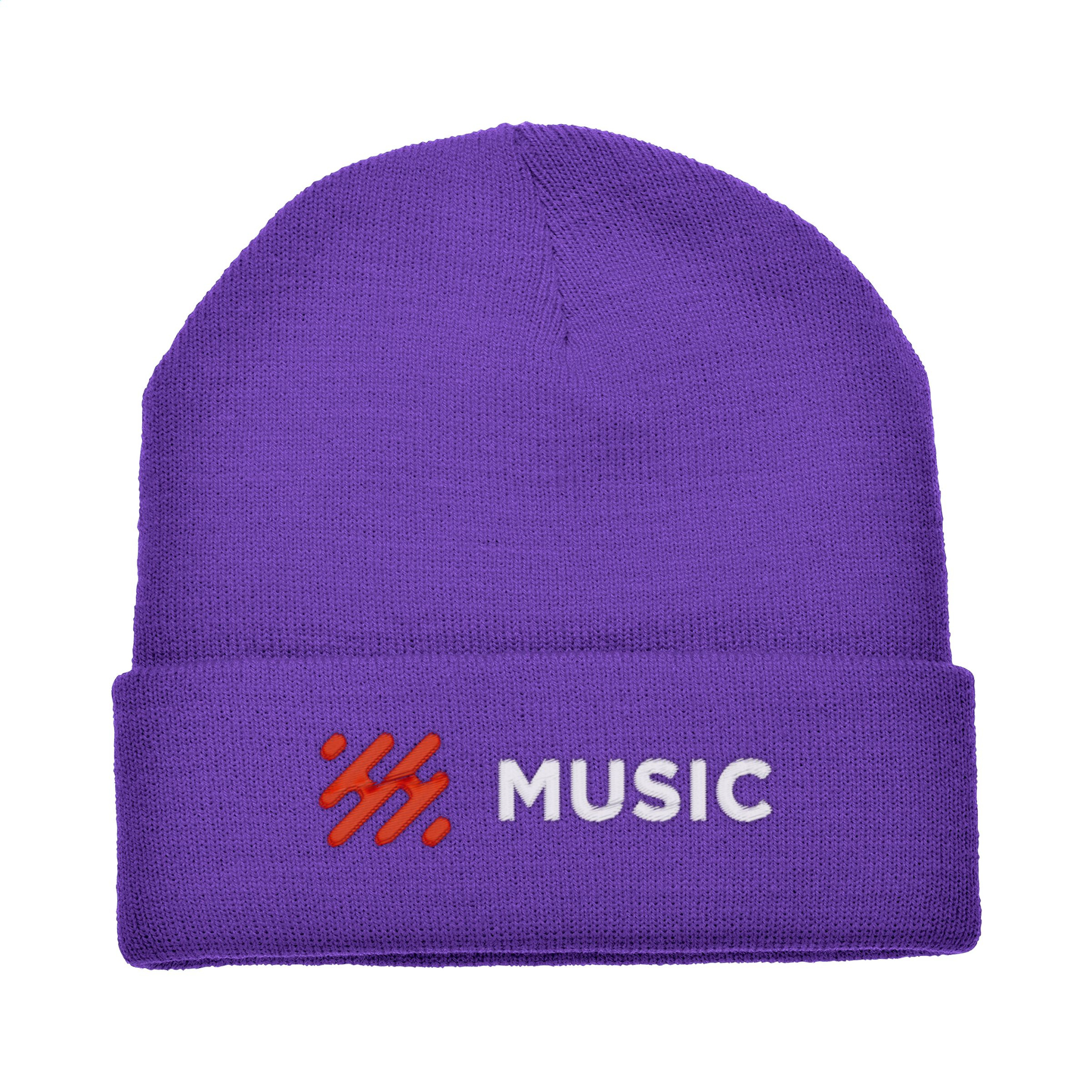 Stickad mössa med mudd. 100% akryl. Populär modell, varm och bra kvalitet. En storlek.