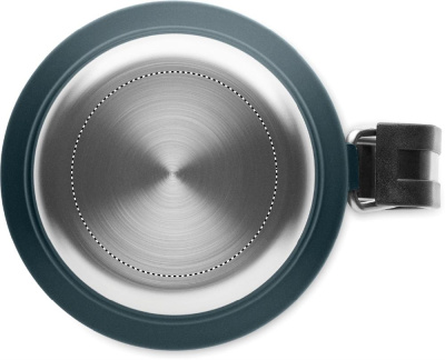 Dubbelväggig vakuumisolerande flaska i återvunnet rostfritt stål (90% återvunnet rostfritt stål och 10% rostfritt stål) med handtag på sidan. Lock i PP och mugg i återvunnet rostfritt stål. Läckagefri. Volym: 1L.