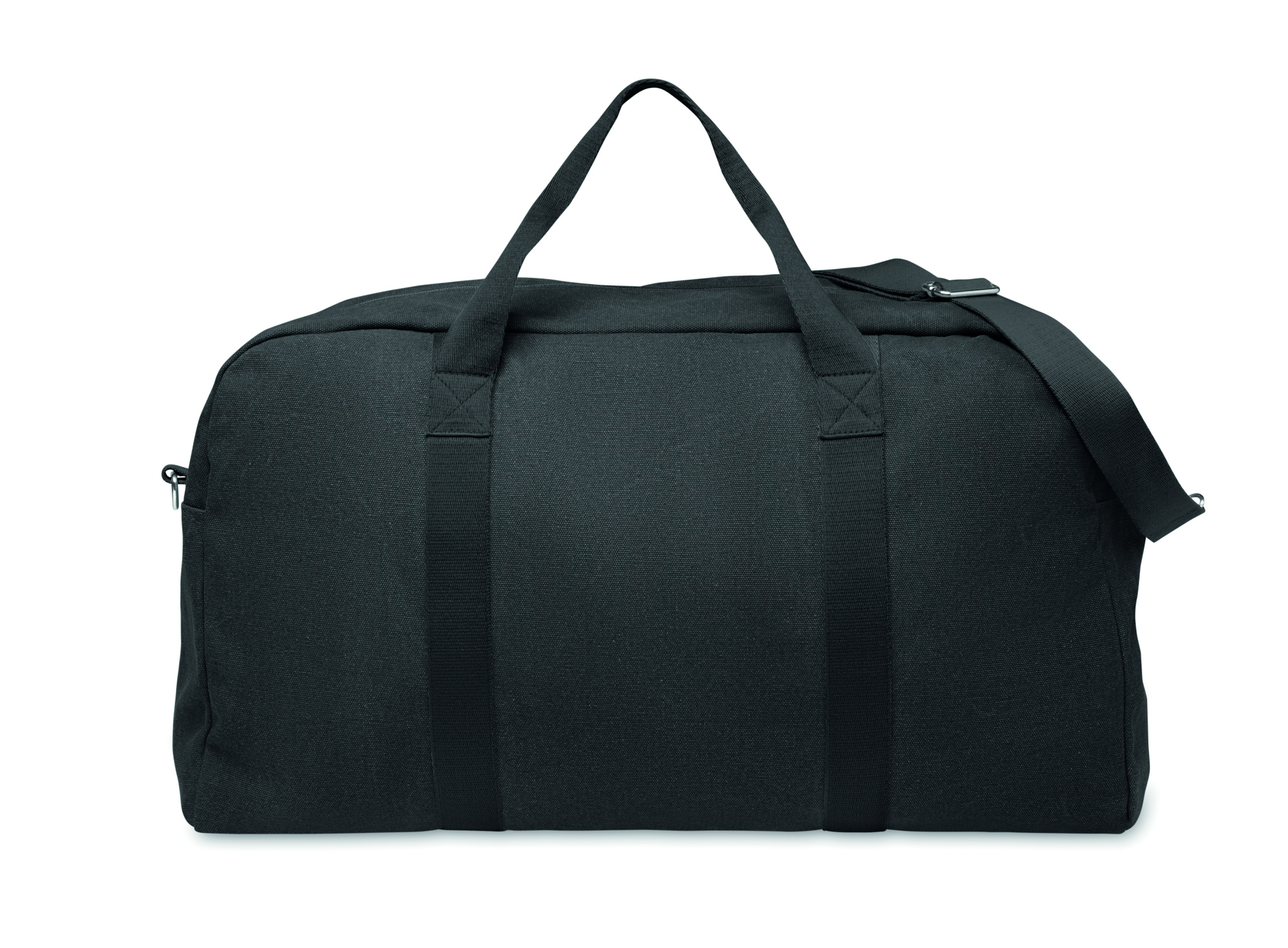 Duffelbag/väska i 450 gr/m² återvunnet material (60% återvunnen bomull och 40% återvunnen polyester) med en justerbar och avtagbar bomullsrem.
