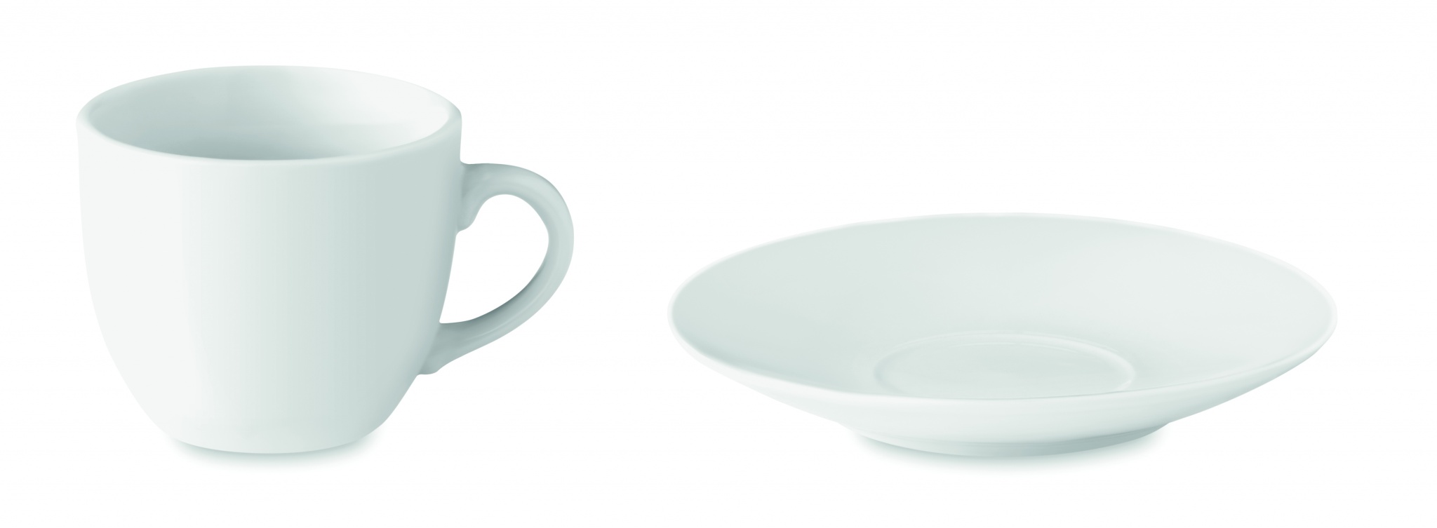 Espresso set i porslin innehållande 1 st muggar med fat. Rymmer 80 ml.