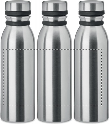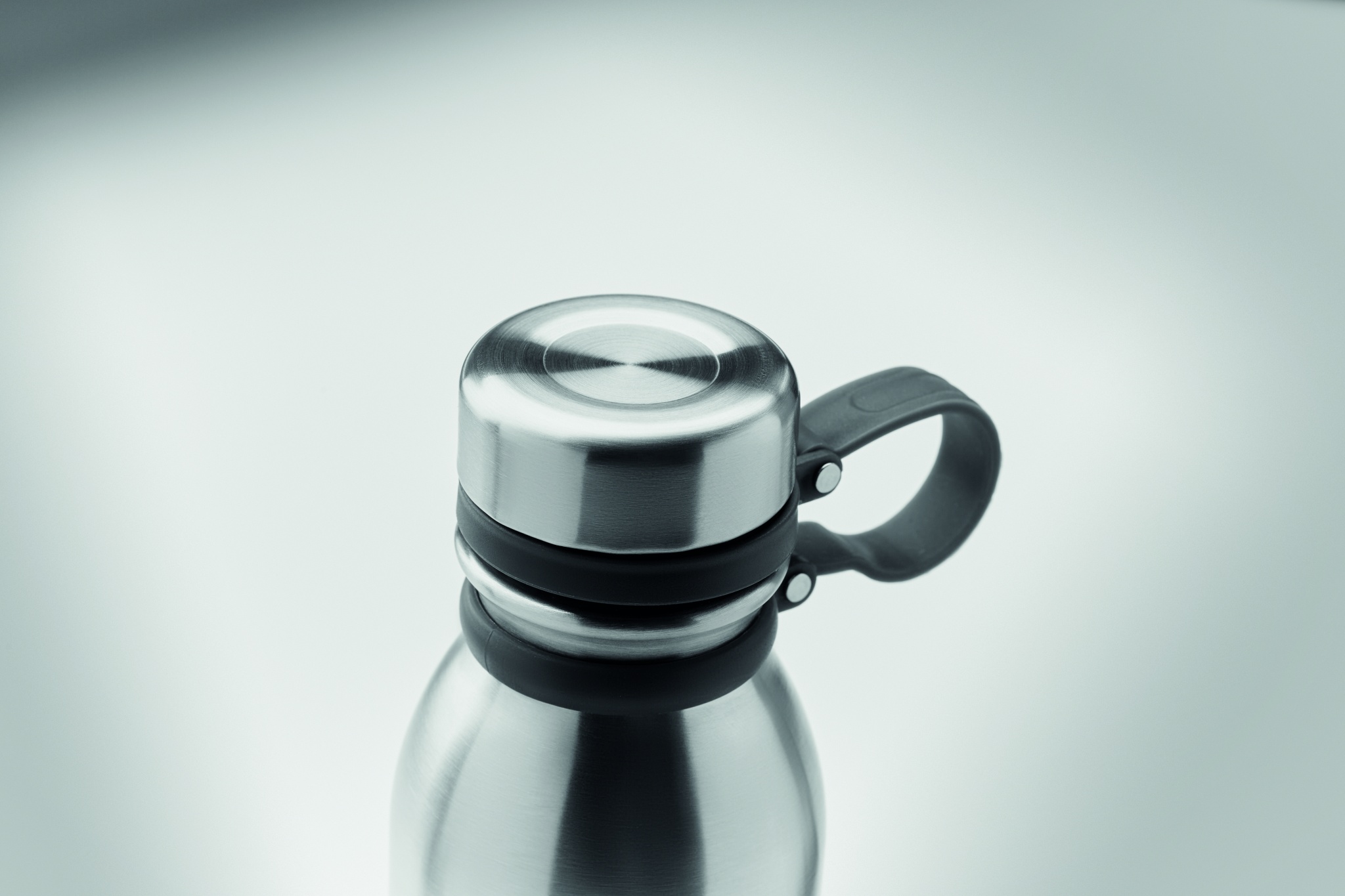 Flaska med dubbelvägg i rostfritt stål och silikongrepp som gör den lätt att bära. Fri från BPA. Läckagefri. Kapacitet: 600 ml. Läckagefritt.