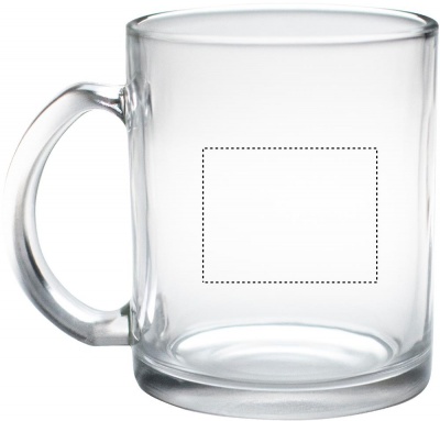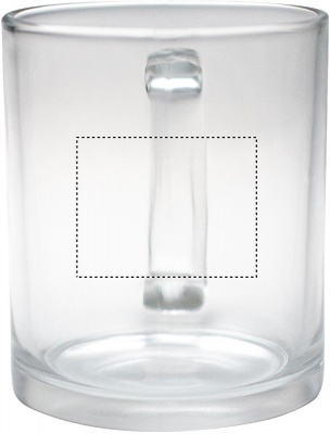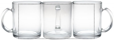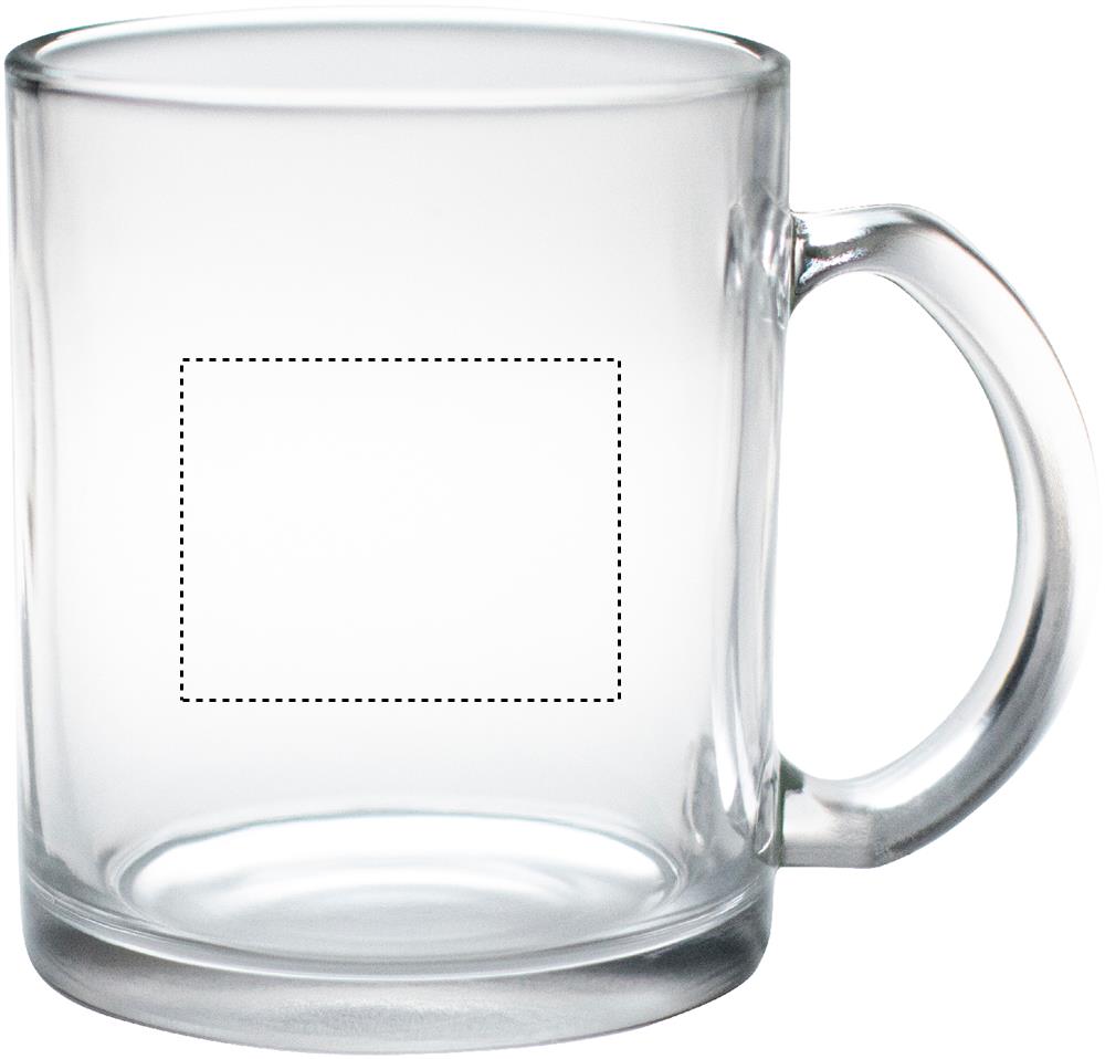 Mugg i klarglas med en kapacitet på 300 ml med specialbeläggning för sublimering.