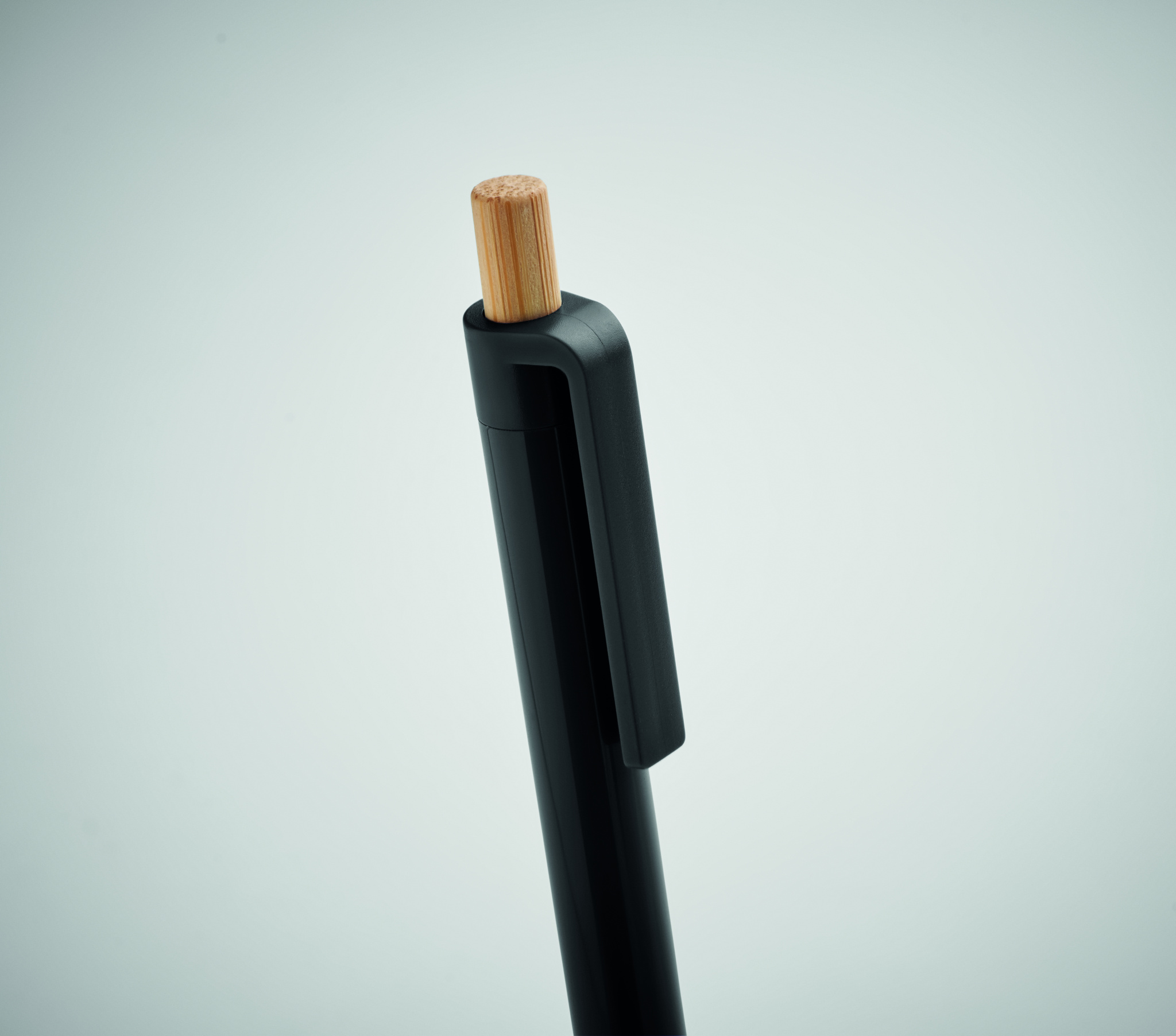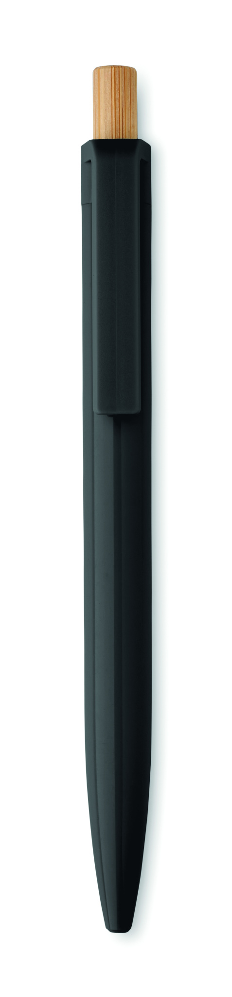 Penna i återvunnen ABS med tryckknapp i bambu. Blått bläck.