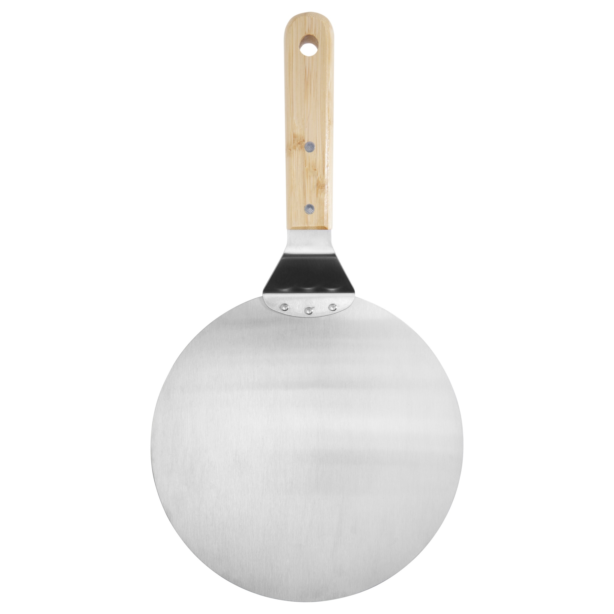 Med denna tunna pizzaspade i metall är det enkelt att få ut pizzan eller pajen ur ugnen upp på tallriken. Handtaget är tillverkat av bambu som kommer från och produceras enligt hållbara standarder.