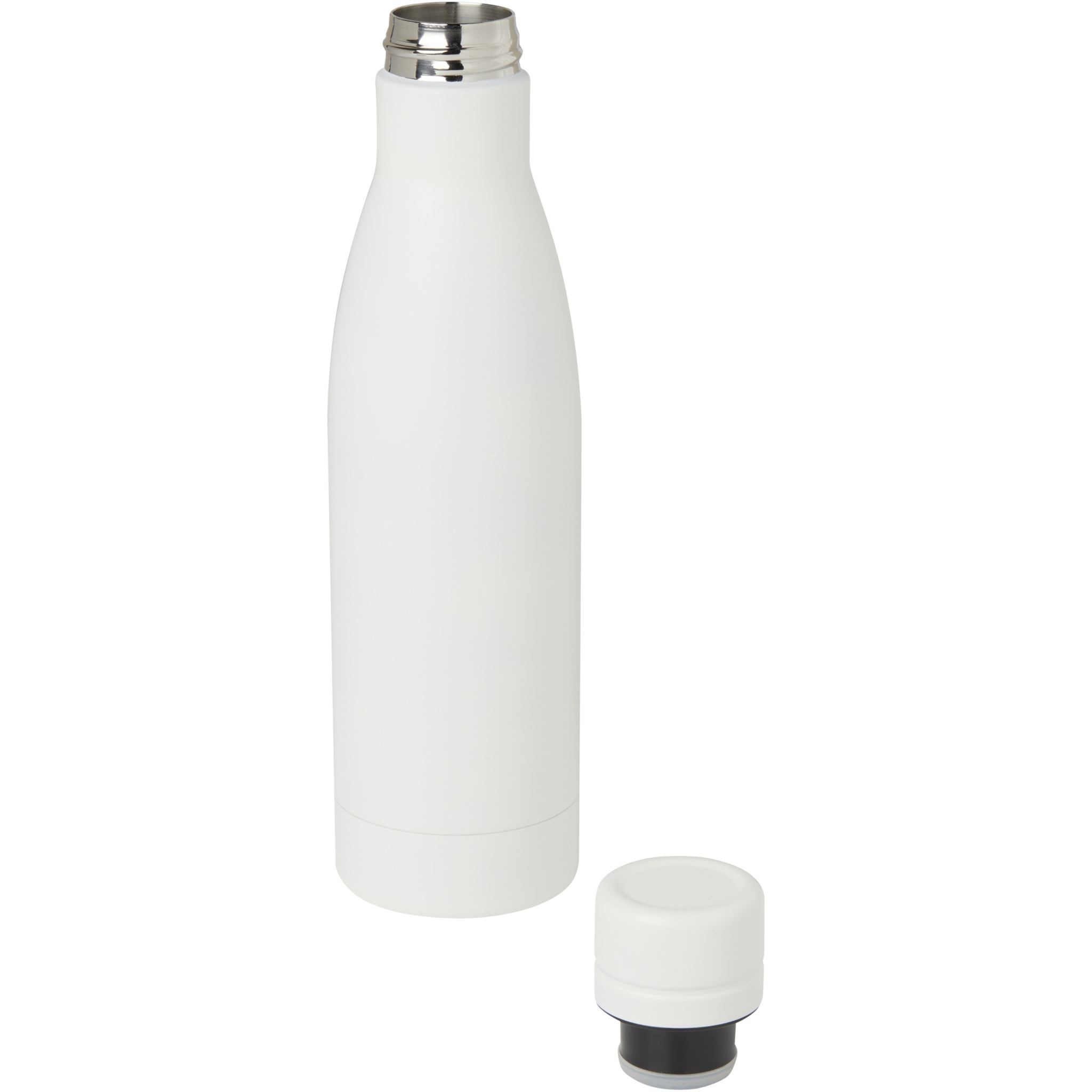Håll dina drycker varma i 12 timmar eller kalla i 24 timmar med den kopparvakuumisolerade flaskan Vasa. Flaskan har dubbla väggar och är tillverkad av RCS-certifierat återvunnet rostfritt stål med vakuumisolering och en kopparpläterad innervägg. Detta innebär att din dryck hålls rykande varm eller iskall beroende på dina behov. BPA-fri och testad och godkänd enligt tysk lagstiftning om livsmedelssäkerhet (LFGB) och för ftalatinnehåll enligt REACH. Volymkapacitet: 500 ml. Levereras i en presentförpackning tillverkad av ansvarsfulla och hållbara material.